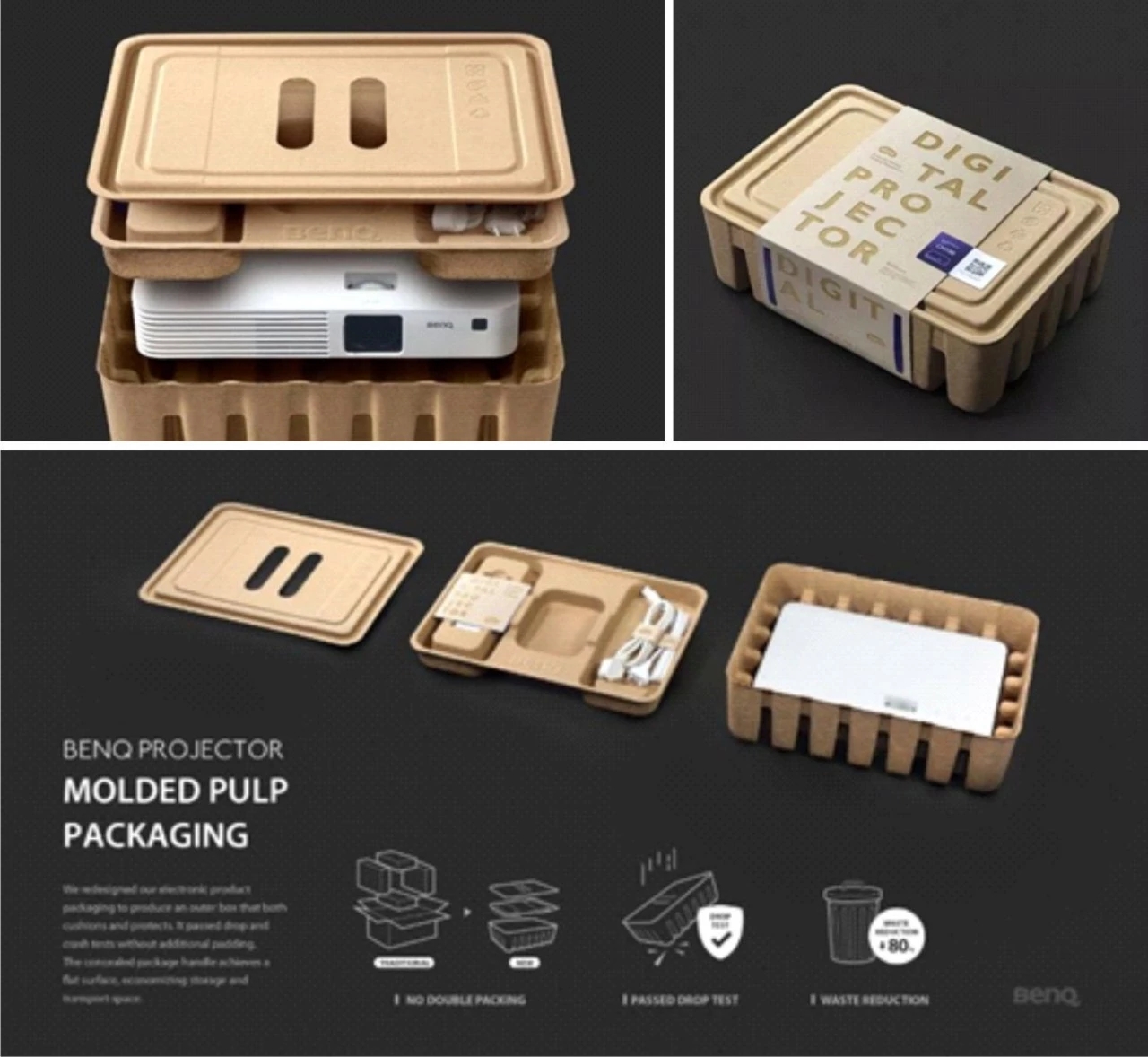 明基(BenQ) 為其電子產(chǎn)品推出的全新包裝,采用了非復(fù)合型紙漿模塑材料制成,