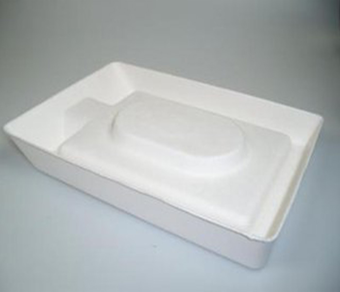 紙漿模塑制品是以紙箱邊角料、新聞紙、白色純木漿等為原料,經(jīng)過碎漿并調(diào)配成一定濃度的漿料,在特制的模具上經(jīng)真空吸附成型,再經(jīng)過干燥而成不同種類和用途的內(nèi)襯體包裝制品。這種包裝制品,具有與包裝物外型相吻合的幾何形狀和良好的防震、防沖擊、防靜電、防腐保護(hù)效果,經(jīng)各項(xiàng)物理指標(biāo)測試,其性能和功效足以替代并優(yōu)于發(fā)泡致辭苯乙稀(EPS)、PS和PVC包裝制品,并且在防震功能、環(huán)保、價格及防靜電等指標(biāo)和功能上占據(jù)優(yōu)勢。廣泛適用于電子、家電、工業(yè)儀表、機(jī)械零部件、電工工具、電腦、家電、玻璃、陶瓷和農(nóng)產(chǎn)品等行業(yè)的內(nèi)襯包裝上。